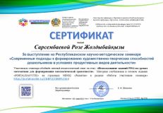 Работу просим выслать на ватсап +77055292025 или на адрес moi.rasvitie@mail.ru За участие в работе Семинара вам будет выслан СЕРТИФИКАТ.