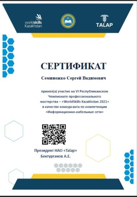 Орталықты құру педагогтар мен білім алушыларға желілер бойынша кәсіби дағдыларын арттыруға және Wolrdskills чемпионатына қатысуға дайындалуға мүмкіндік береді. Біздің колледж студенттеріміз «Ақпараттық кабельдік желілер» құзыреттілігі бойынша World Skills Kazakhstan республикалық чемпионатында 2021 жылдан бастап белсенді қатысып жүр. 2023 жылы біздің студент Смирнова Эрика World Skills Kazakhstan VIII Республикалық чемпионатында "Ақпараттық кабельдік желілер" құзыретінде "Үздік маман" номинациясын жеңіп алды.